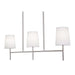 View full detailsTransitional vanity with tubular steel construction. White linen shades. Candelabra base sockets. Available in three or four shade design and three...