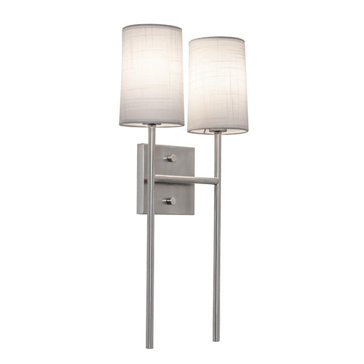 View full detailsTransitional sconce with tubular steel construction. White linen shades. Candelabra base sockets. Available in one or two shade design and three fi...