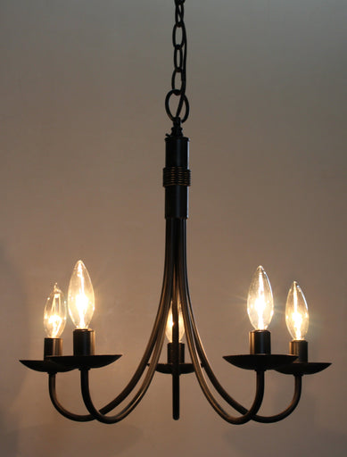 Edison Five Light Chandelier Matte Black & Vintage Brass