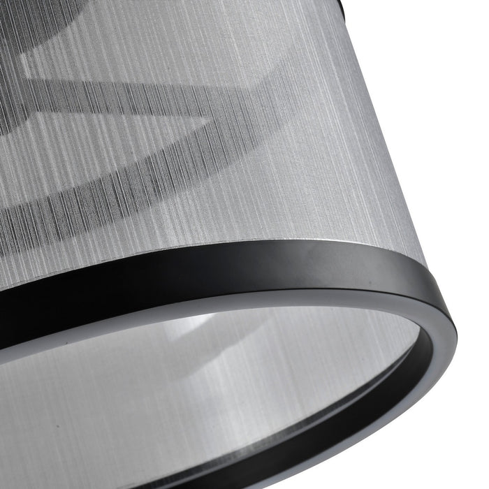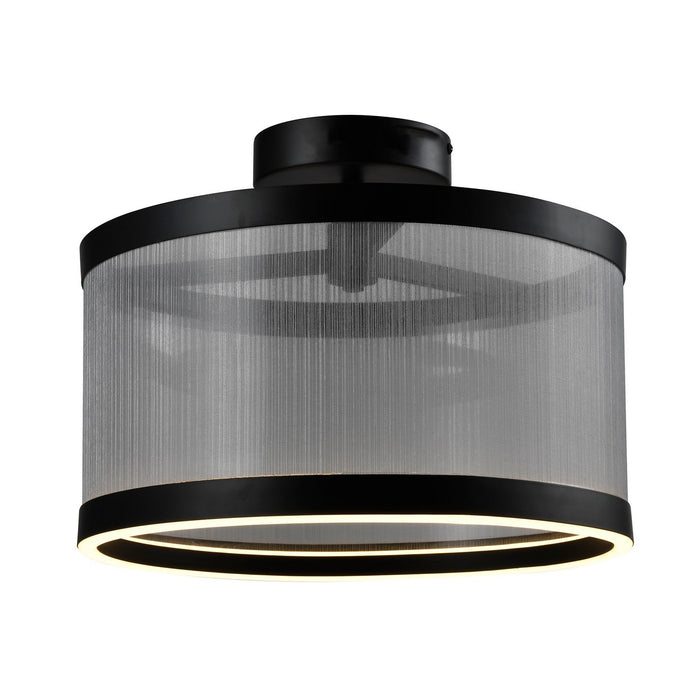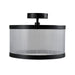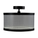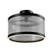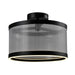 View full detailsThe Cora Collection semi flushmount enchants with its modern elegance, showcasing a sleek black metal frame paired with a silver organza hardback s...