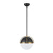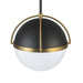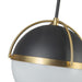 This pendant from the Dahlia collection by designer Kevin Kraemer radiates refined sophistication with its semi-matte black frame adorned by brushed brass accents. The striking white half-sphere glass diffuser casts a warm, inviting glow. Versatile in its charm, it can be styled as a pendant or a semi-flushmount fixture. (comes with extra rods for different height preferences, also included is a hang-straight device to adapt to sloped ceilings if needed)