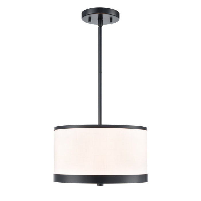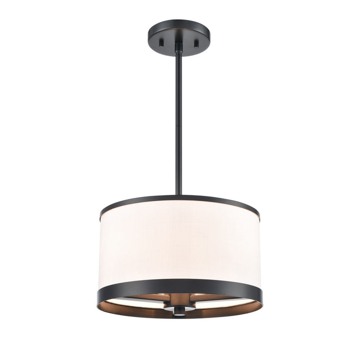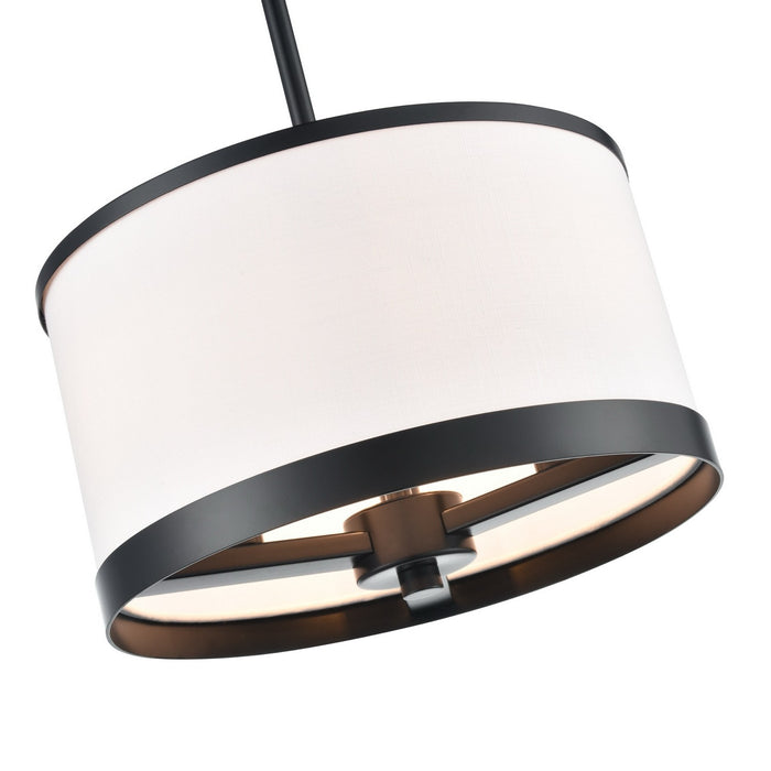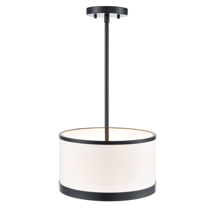 This elegant pendant light from the "High Street" collection, designed by Kevin Kraemer, radiates understated elegance. The hardback linen shade, in a soft eggshell white hue, casts a warm, inviting glow, perfect for elevating any space. Encased in sleek black framing metalwork, the design balances contemporary charm with understated luxury. This model comes with extra rods for any height preference. This model can be a pendant or a close to ceiling semi-flushmount.