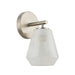 Step into timeless elegance with the wall sconce from the Brooke Collection. Its brushed nickel frame exudes modern sophistication, perfectly paired with the ethereal "Wispy White" glassware that gently diffuses light like a soft cloud at dusk. Whether gracing your hallway, vanity, bedroom, or living space, this sconce casts a warm, inviting glow, creating an ambiance of understated romance and refined charm.