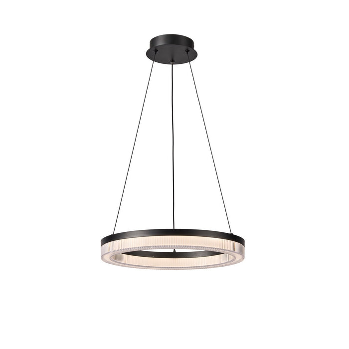 Elevate your space with the modern elegance of the LED chandelier from the Ari Collection. Its sleek black frame and ribbed clear bottom lens create a soft, mesmerizing glow. Suspended adjustable aircraft type cables with a "push-pin" system, it offers both style and effortless versatility. This model has a 3CCT switch to choose the color temperature of your preference (3K, 4K, 5K). This chandelier can also be height adjusted to be mounted as a semi-flushmount.