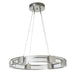 The popular Aura with a contemporary glass brightens any space. With lighting as functional as it is beautiful, the Aura's light is dispersed via its curved, double glass panels offered in either frosted or clear seeded glass. Six handcrafted steel elements serve to shade and adorn this stunning ceiling fixture.