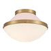 The Xander collection features a playful, mid-century-inspired design with clean lines and fun pops of color. It has white opal glass and gold accents, creating a two-toned finish that adds a touch of whimsy. This versatile fixture can be used in various settings, making it a stylish and functional addition to any room.