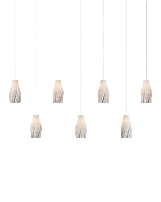 View full detailsThe Posh 7-Light Linear Multi-Drop Pendant has shades made of white ceramic crafted to resemble tassels. The sense of movement created by the mater...
