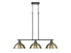 The Duncan collection is contemporary style with an industrial feel. The collection features a variety of simple, traditional silhouettes that are a nod to a bygone era. Transform the look of your room with these classic, vintage-inspired fixtures. A variety of plated and painted metal shade finishes are offered in choice combinations. This 3-light linear pendant features frosted glass diffusers for warm task lighting over a bar or nook.