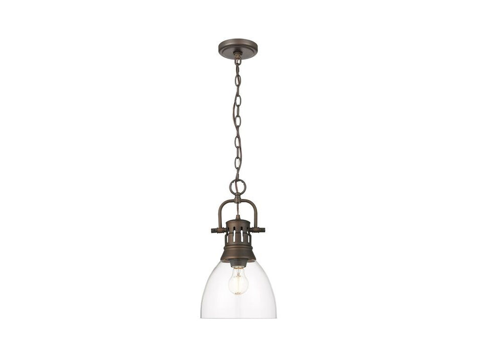 The Duncan collection is contemporary style with an industrial feel. The collection features a variety of simple, traditional silhouettes that are a nod to a bygone era. Transform the look of your room with these classic, vintage-inspired fixtures. A variety of plated and painted metal shade finishes are offered in choice combinations. This small, chain-hung pendant features a may be hung individually or grouped over a bar.