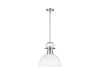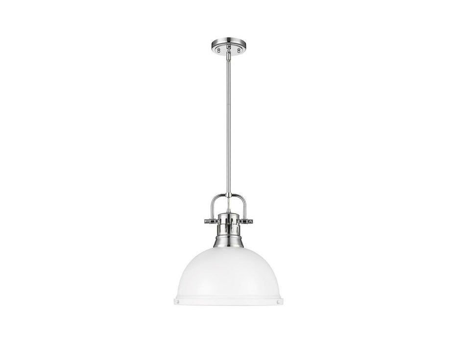 The Duncan collection is contemporary style with an industrial feel. The collection features a variety of simple, traditional silhouettes that are a nod to a bygone era. Transform the look of your room with these classic, vintage-inspired fixtures. A variety of plated and painted metal shade finishes are offered in choice combinations. This large, rod-hung pendant features a glass diffuser and is comfortably sized for a small nook or island. The pendant may be hung individually or grouped over a bar.
