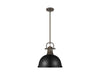 The Duncan collection is contemporary style with an industrial feel. The collection features a variety of simple, traditional silhouettes that are a nod to a bygone era. Transform the look of your room with these classic, vintage-inspired fixtures. A variety of plated and painted metal shade finishes are offered in choice combinations. This large, rod-hung pendant features a glass diffuser and is comfortably sized for a small nook or island. The pendant may be hung individually or grouped over a bar.