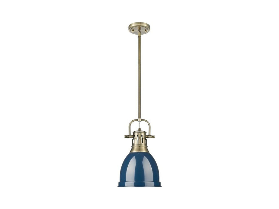 The Duncan collection is contemporary style with an industrial feel. The collection features a variety of simple, traditional silhouettes that are a nod to a bygone era. Transform the look of your room with these classic, vintage-inspired fixtures. A variety of plated and painted metal shade finishes are offered in choice combinations. This small, rod-hung pendant features a may be hung individually or grouped over a bar.