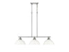 The Duncan collection is contemporary style with an industrial feel. The collection features a variety of simple, traditional silhouettes that are a nod to a bygone era. Transform the look of your room with these classic, vintage-inspired fixtures. A variety of plated and painted metal shade finishes are offered in choice combinations. This 3-light linear pendant features frosted glass diffusers for warm task lighting over a bar or nook.