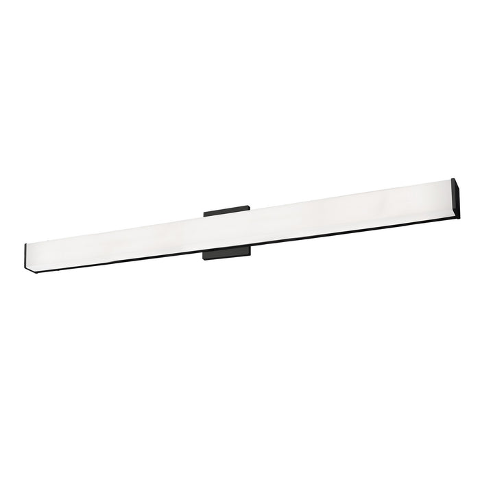 An extruded square diffuser surrounds the LED source of the geometric vanity fixture and gently spreads light. Enclosed at the ends by two thick caps the design is characterized by minimal details and clever features. During installation the lamp assembly may slide on the mounting track to allow for ideal positioning. Adding to the versatile function are the multiple fixture lengths and mounting orientations. Optional installation without backplate for smaller junction boxes.