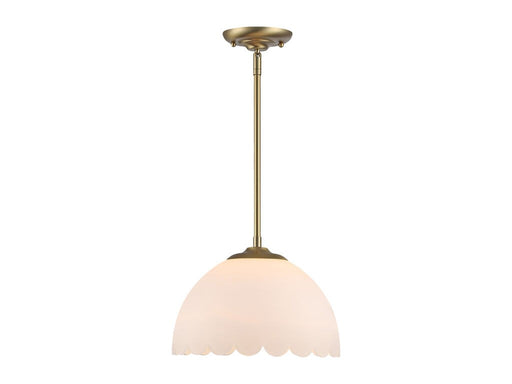 Dorinda's transitional design is fit for a variety of decors. The scalloped opal glass shade gives the fixture a gentle, whimsical feel. When lit, the smooth glass glows warmly. Vintage-inspired and paired with select finishes, Dorinda has a sweet, classic look that is ready to grace your home.