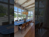 Cylinder shaped coco beads accented with tiny wood beads hand-sewn over a powder coated metal frame all in an off-white tone. Chandelier comes with...