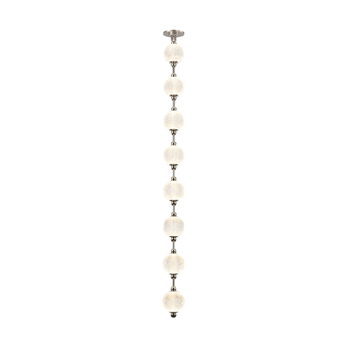 Like a gorgeously beaded garment, the Marni collection adds luxury and interest to any design. Meticulously cut-acrylic shades create glittering beams of illumination throughout the design. Available in Polished Nickel and Natural Brass accompaniments. Table lamp configuration is available in Natural Brass with Natural Linen Shade and Polished Nickel with White Linen Shade.