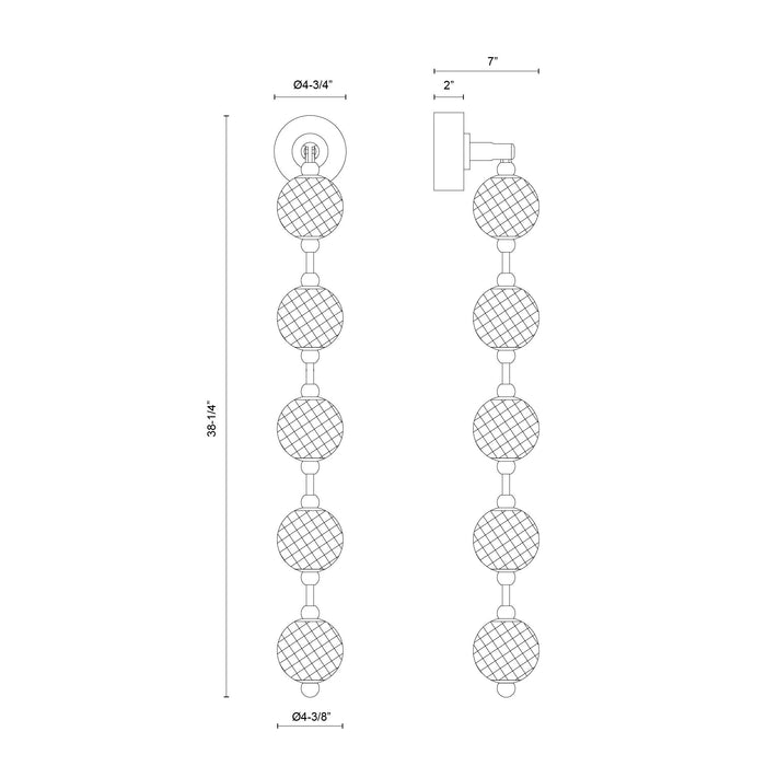 Like a gorgeously beaded garment, the Marni collection add luxury and interest to any design. Meticulously cut spherical shades create glittering beams of illumination throughout each design. Available in Polished Nickel and Natural Brass accompaniments.