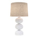 The Talita table lamp makes a totemic statement with softly organic, stacked geometry. The shapely off-white base, resembling a paper mache-like material, expresses a highly tactile surface quality. This texture is further enhanced by a natural jute shade with a rustic, earthy edge. Due to the one-of-a-kind nature of the medium, exact colors and patterns may vary slightly from the image shown.