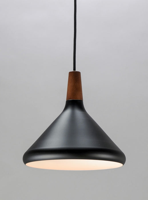 Inspired by classic Scandinavian design, these metal spun pendants of Black, White and Brushed Platinum feature mixed materials such as opal white glass or natural elements like Walnut finished wood and leather straps.