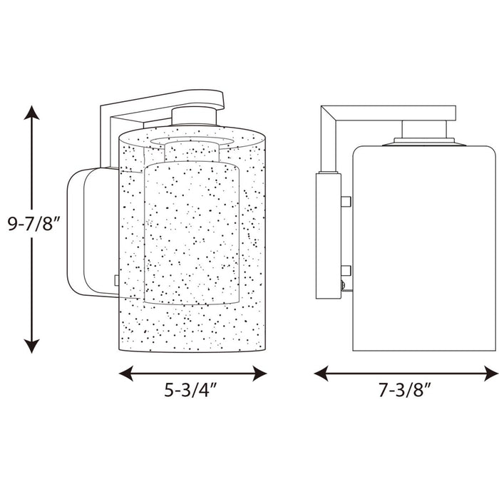 Outdoor lighting adds both beauty and enhances the safety of your home or property. Compel is our new outdoor collection featuring modern forms and layered glass. Etched opal glass within a seeded glass shade offers individuals design flexibility, as fixtures are ideal for exterior settings and in unexpected interior applications. 6" One-Light wall lantern for outdoor applications in a Black finish.