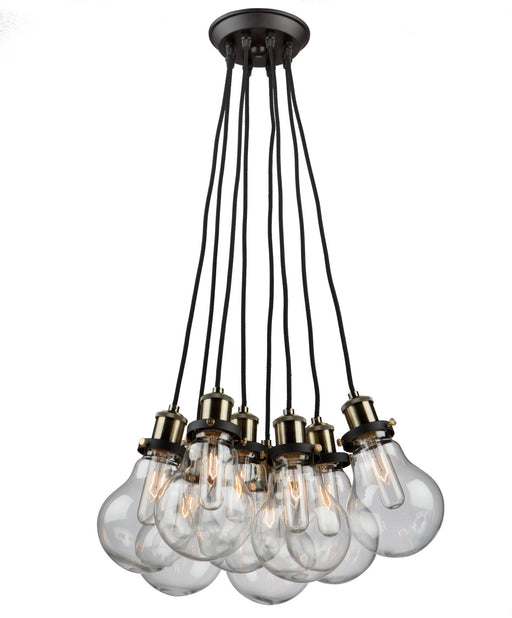 Edison Three Light Chandelier Matte Black & Vintage Brass