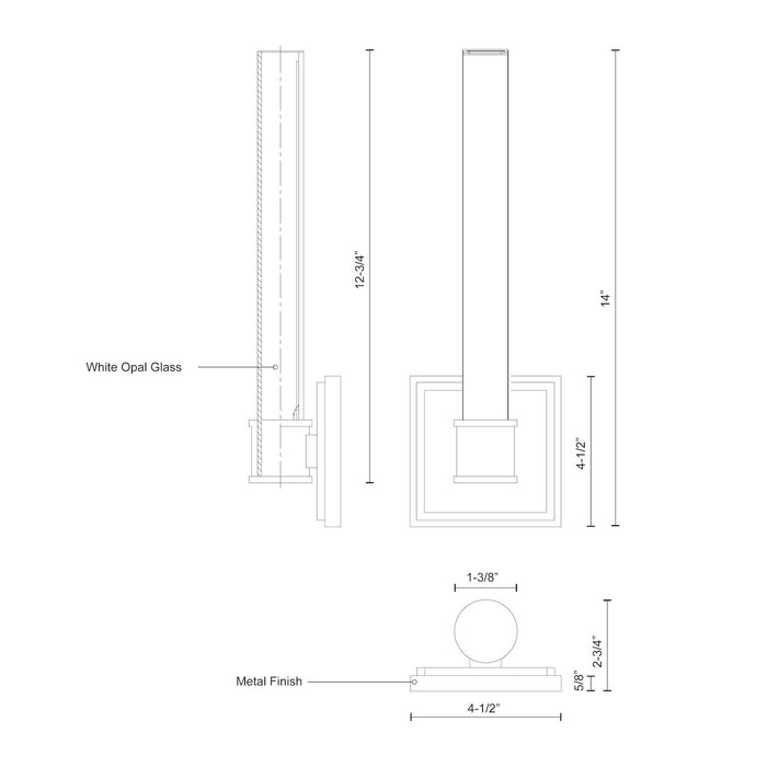 A tubular length of illuminated rod the Rona wall light is supported and clasped with a detailed cylindrical projection. The thick square outline of the attachment plate frames the lamp holder and echoes the refinement of present architectural trim. Available as either a sconce or vanity and in several curated finishes.