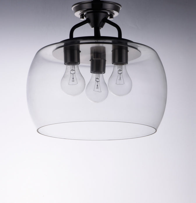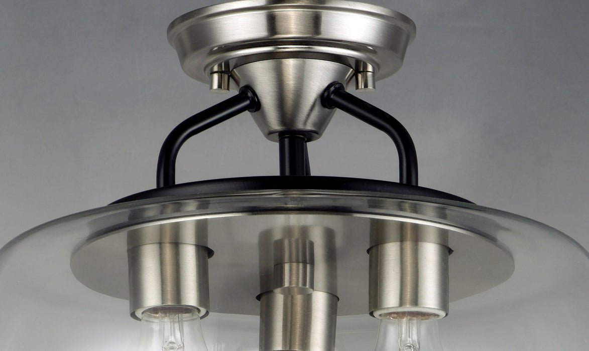 Goblet Three Light Semi-Flush Mount Black / Satin Nickel