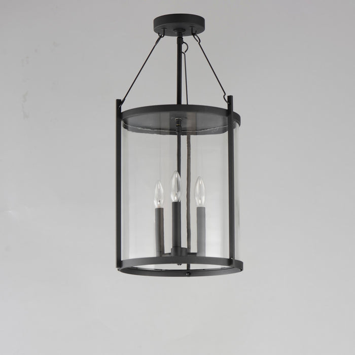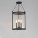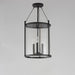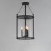 View full detailsSquared columns in Matte Black finish tower above the cylindrical glass shade rated for outdoor applications. A rectangular hook detail carries the...