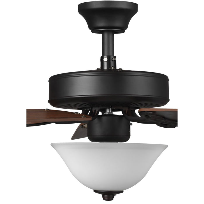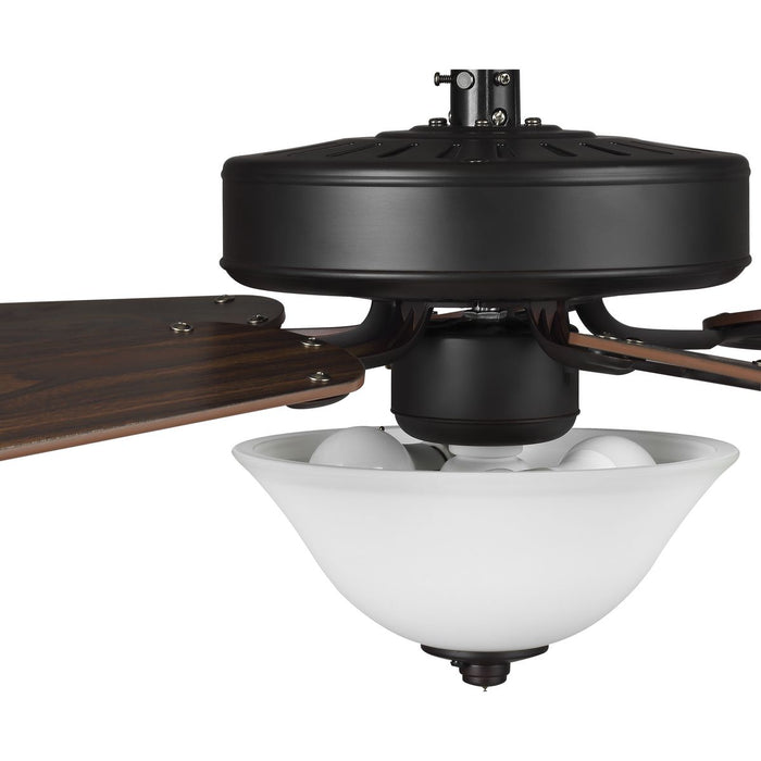 A 52 in two-light, five-blade fan with reversible blades and a beautifully crafted white etched glass bowl. Powerful AirPro motor features 3-speed ...