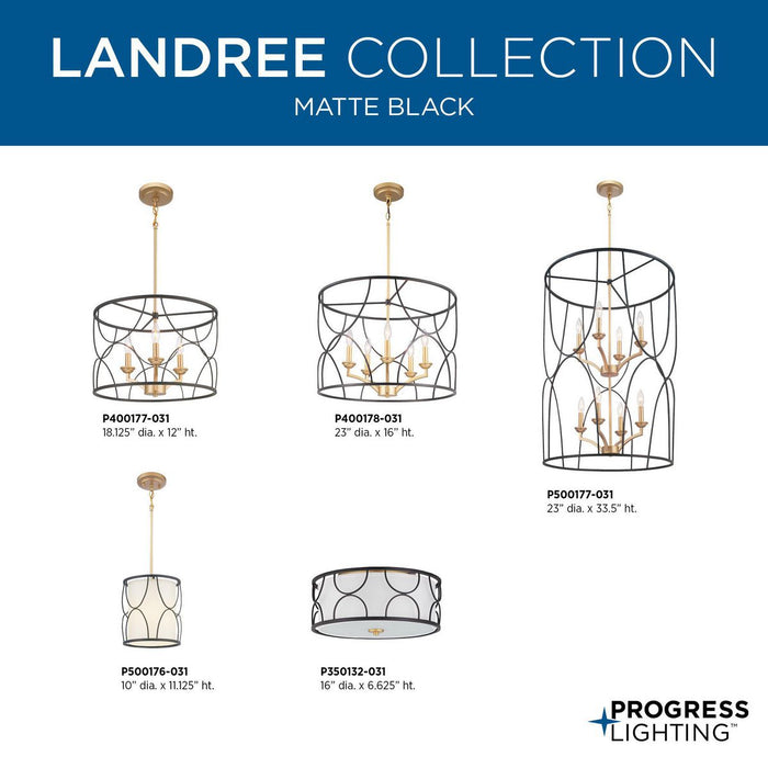 The Landree Collection's Black geometric frame is designed to dramatically surround a white silk shade, presenting depth, dimension and beauty to t...