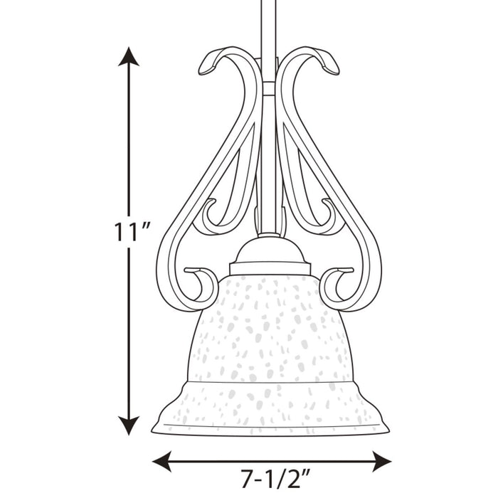 View full detailsOne-light stem-hung mini-pendant with etched white oversized, bell-shaped glass bowl. Distinctive ebbing and flowing of squared scrolls and arms in...