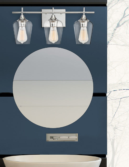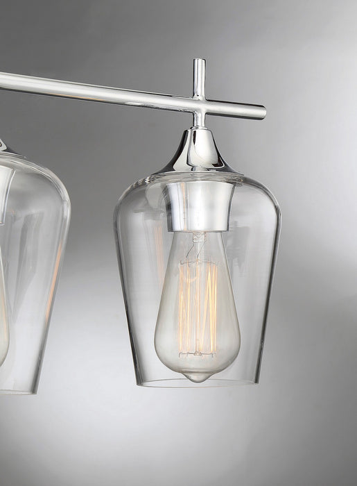 The Octave 3-light bath bar from Savoy House has understated elegance. It features large curved shades of clear glass, minimal detailing and a polished chrome finish. It may be mounted as either uplight or downlight. Bath bar lights are a classic choice for illuminating vanity mirrors in bathrooms big and small. Because the bulbs are exposed, try using stylized bulbs for a different look! The polished chrome finish can be paired with chrome hardware or mixed with hardware in other fixtures. Try the Octave with glam, transitional or contemporary style rooms for a chic look. When you choose a Savoy House lighting fixture, you can be certain you've selected a piece that will withstand the test of time.